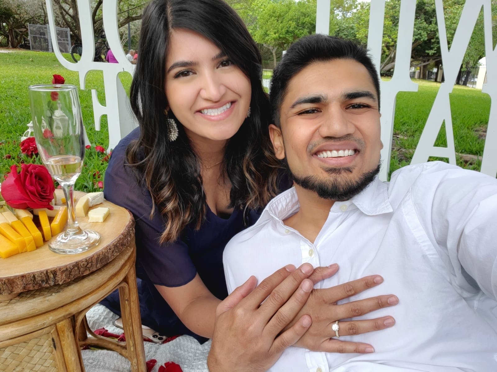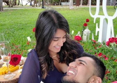On 4 – 3 – 21, the universe gave us a countdown and we said Blast Off! Hari took Alyssa to a gorgeous South Beach Miami Park where he had a romantic picnic set up and got on one knee.